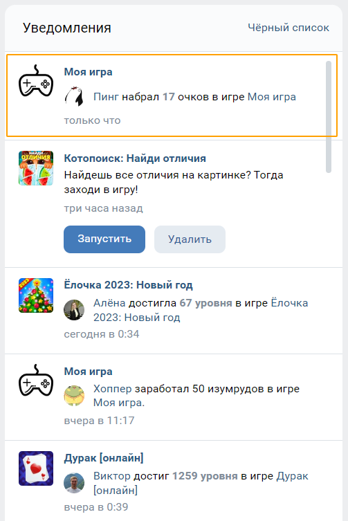 Когда пользователь набирает в игре определённое количество очков, разработчики могут разместить информацию об этом в ленте активности друзей. Такие сообщения — хорошие напоминания об игре друзьям пользователя.
