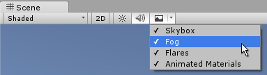 An example of a Popup window in the editor is the "Scene View Effects" options, in the Editor's Scene View toolbar: