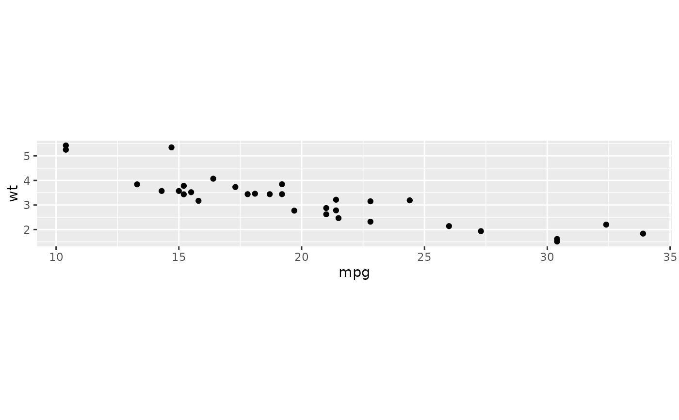 p <- ggplot(mtcars, aes(mpg, wt)) + geom_point()