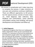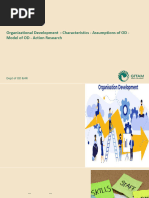 OD CHARACTERISTICS/COMPETENCIES OD focuses on development of organizational culture. OD focuses on overall development of organization and individuals with win-win strategy. It relies heavily on action research. It deals with improvement of ongoing processes. OD focuses on total system change and views organization as complex social system. Delegation of authority, empowerment, and quality of work life a sense of autonomy are the hallmark of OD programme. OD practitioners are facilitators and collaborators. Their assistance in identification of problem areas, arriving at a solution, implementation and feedback is necessary. Their services are valuable. OD is characterized by study and development of multiethnic culture that is supportive of work ethics. People with diverse value system, culture, and interests should be able to work effectively under one roof and achieve cordial relationship with fellow employees. It should be able to help achieve organizational effectiveness. Organizational development is a joint responsibility of owners, employees, investors society, government agencies and consumers. It must be understood that the organizations exist for all of them.