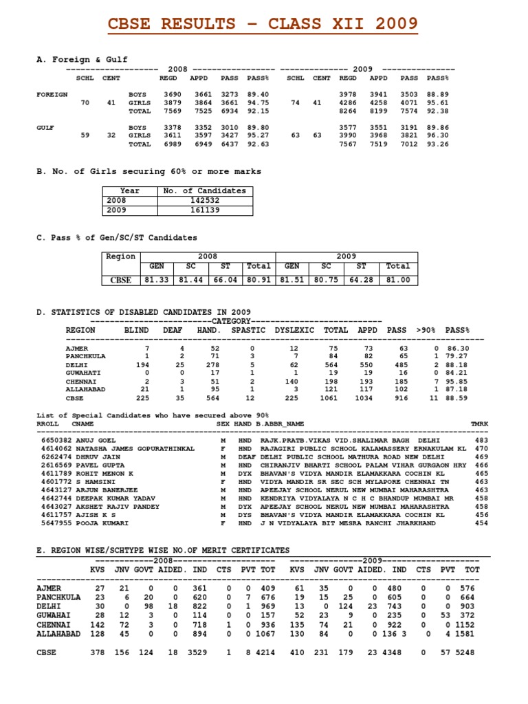 G. GENDERWISE [Link] CANDIDATES WHO OBTAINED 90% AND ABOVE MARKS DURING 2008 & 2009