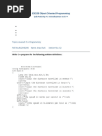x=x*a; return x; } Write a function called Zero_small() that has two integer arguments being passed by reference and sets the smaller of the two numbers too. Write the main program to access this function. Ans. #include<iostream.h> #include<conio.h> 17 void zero_small(int &,int &); int main() { int x,y; cout<<"Enter first number : "; cin>>x; cout<<"Enter second number : "; cin>>y; zero_small(x,y); cout<<"First number is : "<<x; cout<<"\nSecond number is : "<<y; getch(); return 0; } void zero_small(int &a, int &b) { if(a<b) a=0; else b=0; } 18 Write a program to determine all Pythagorean triplets in the range 100 to 1000. (A Pythagorean triplets is a set of three integers i, j, k such that i2+j2=k2) Ans. #include <iostream.h> #include <conio.h> void main(){ int side1, side2, hyp; clrscr(); cout<< " \n Pythagorean triples between 100 to 1000 :\n\n "; for( side1 = 100; side1<=1000 ; side1 ++) for( side2 = 100; side2<=1000 ; side2 ++) for( hyp = 100; hyp<=1000 ; hyp ++) if((side1*side1) + (side2*side2)==(hyp*hyp)) cout<< "\n"<<"("<<side1<<"\t"<< side2<<"\t"<<hyp<<")"; getch(); } 19 Write a C++ program to read a line of text from the keyboard and display the following information on the screen: (i) Number of words (ii) Number of characters #include <iostream.h> Ans. #include <conio.h> #include <stdio.h> #include <string.h> void main() { char sen[50];