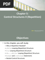 Conclusion After do this LAB 5 (Repetition Structure) we know how to writing C program using looping statements. Loops are used to repeat a block of code. Being able to have your program repeatedly execute a block of code is one of the most basic but useful tasks in programming -- many programs or websites that produce extremely complex output (such as a message board) are really only executing a single task many times. (They may be executing a small number of tasks, but in principle, to produce a list of messages only requires repeating the operation of reading in some data and displaying it.) Now, think about what this means: a loop lets you write a very simple statement to produce a significantly greater result simply by repetition.