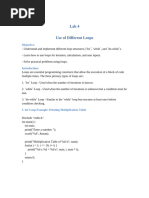 In this lab, we use three types of loop control structure which is while, dowhile and for. All of these statement has a same function but different format and for statement is the easiest to use. For an example: for(digit=0;digit<=9;++digit) do { total +=n; n++; } while (n<=limit);