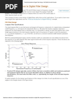 Filter Type: Low Pass 2. PassBand Frequency(Fp) = 1KHz 3. StopBand Frequency(Fs) = 4.3 KHz 4. Sampling Frequency (Fsam) = 10KHz Transition Width(w) Normalized = (4300-1000)/10,000 = 0.33 Cut off frequency(Normalized) = 1000/(10,000/2)=0.2 Approximation: Order of Filter = 3.3/w = 10; N = 10;a1=1;a2=1;Fs=10000;Wc=0.2; b1 = fir1(N-1,Wc,'low' ,hamming(N)); [db1, w1] = freqz(b1, a1, 512, Fs); mag1 = 20*log10(abs(db1)); subplot(2,2,1);plot(w1, mag1), grid on; xlabel('Frequency (Hz)');ylabel('Magnitude Response (dB)'); title('FIR Low Pass using Hamming Window'); subplot(2,2,2);stem(b1);grid on; xlabel('n+1');ylabel('b(n)');title('Filter Coefficient'); b2 = fir1(N-1,Wc,'low' ,boxcar(N)); [db2, w2] = freqz(b2, a2, 512, Fs); mag2 = 20*log10(abs(db2)); subplot(2,2,3);plot(w2, mag2), grid on; xlabel('Frequency (Hz)');ylabel('Magnitude Response (dB)'); title('FIR Low Pass using Rectangular window'); subplot(2,2,4);stem(b2);grid on; xlabel('n+1');ylabel('b(n)');title('Filter Coefficient'); Specification: 5. Filter Type: High Pass 6. Other filter specification same as that of Low Pass filter. N = 10;a1=1;a2=1;Fs=10000;Wc=0.2; b1 = fir1(N-1,Wc,'high' ,hamming(N+1)); [db1, w1] = freqz(b1, a1, 512, Fs); mag1 = 20*log10(abs(db1)); subplot(2,2,1);plot(w1, mag1), grid on; xlabel('Frequency (Hz)');ylabel('Magnitude Response (dB)'); title('FIR High Pass using Hamming Window'); subplot(2,2,2);stem(b1);grid on; xlabel('n+1');ylabel('b(n)');title('Filter Coefficient'); b2 = fir1(N-1,Wc,'high' ,boxcar(N+1)); [db2, w2] = freqz(b2, a2, 512, Fs); mag2 = 20*log10(abs(db2)); subplot(2,2,3);plot(w2, mag2), grid on; xlabel('Frequency (Hz)');ylabel('Magnitude Response (dB)');