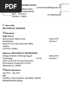 An integrated Matlab and Mathematica environment has been constructed to automate the development of analytic relations for user-supplied shapes. Matlab is used to drive the process and employs Mathematicas symbolic engine to perform the integrations. Mathematica was chosen due to its ability to add constraints on symbolic variables (for example, the radius of a sphere is always greater than zero). Supplying this information to Mathematica as an assumption inuences how the integration is performed. After the designer describes the surface of the shape, routines containing the analytic aerodynamic relations are generated in a Matlab-based aerodynamics module. This module can be easily integrated into trajectory simulations, be used for parametric analyses, or be used in shape optimization. The six steps performed in this automated process are further detailed. Step 1: Surface Parametrization The analytic aerodynamic expressions are obtained by integrating Cp over the unshadowed surface of the vehicle as described in Eq. (4) and Eq. (5). In order to evaluate these integrals, the surface of each shape must be parametrized by two independent variables via a position vector, r, as shown in Eq. (9), where f (u, v ), g (u, v ), and h(u, v ) describe the x, y , and z location of a point on the surface of the vehicle as a function of the surface parametrization (u, v ). The choice in parametrization variables, u and v , is largely at the discretion of the designer. However, the choice in parametrization can dramatically inuence the ability of Mathematica to obtain closed-form solutions when performing the integrations. Additionally, due to the convention used when computing the surface normal, u and v must be chosen such that ru rv is pointed r r and rv = v . The choice in parametrization also inuences the expression for the inward, where ru = u dierential area, dA, of the integrations. The dierential area element is computed using the magnitude of the inward normal vector as shown in Eq. (10). r = [f (u, v ) g (u, v ) h(u, v )]T dA = n = ru rv Step 2: Compute Pressure Coecient With the surface parametrized by u and v , the pressure coecient can be computed. Recall from Figure 1 that sin() is dened as shown in Eq. (11), where n is calculated from Eq. (12) and V is dened in Eq. (3) of Section II.B. With sin() known, Cp can be computed using Eq. (1).