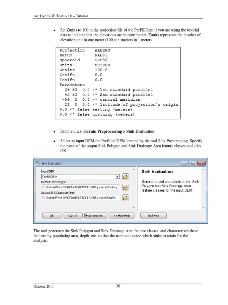 The tool generates the Sink Polygon and Sink Drainage Area feature classes, and characterizes these