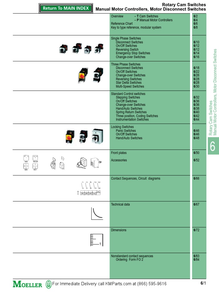 controllers and disconnect switches rated up to 100 Amps. A variety of handles, enclosures and