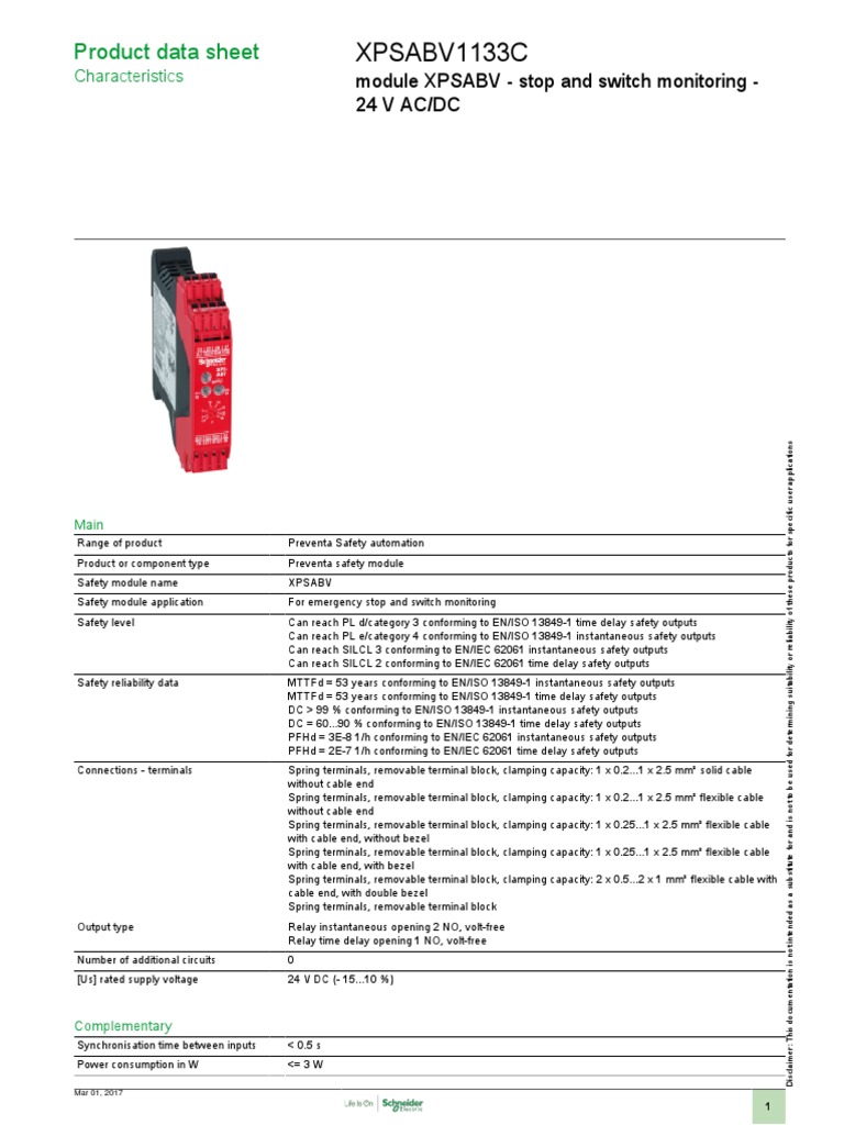 Characteristics module XPSABV - stop and switch monitoring -