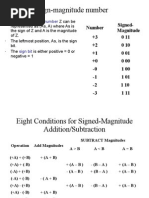 Example 1: consider 35 - 22 both represented as 7-bit numbers with a sign bit.
