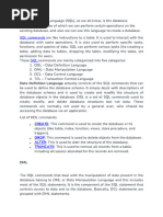 1. DDL(Data Definition Language) : DDL or Data Definition Language actually