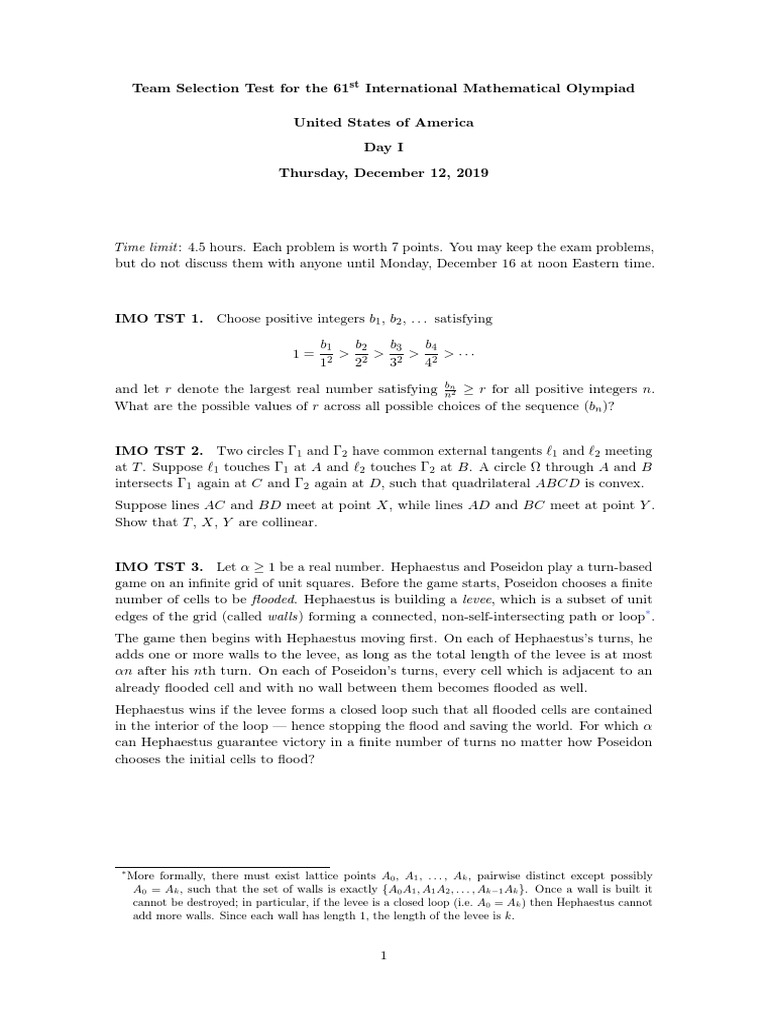 IMO TST 1. Choose positive integers b1 , b2 , . . . satisfying