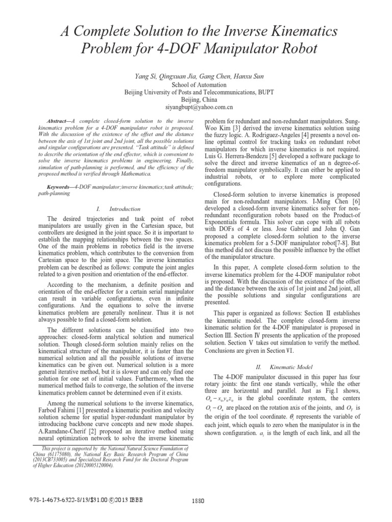 I. Introduction developed a closed-form inverse kinematics solver for non-