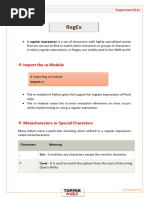 Perhaps the most important metacharacter is the backslash, \. As in Python string literals, the backslash can be followed