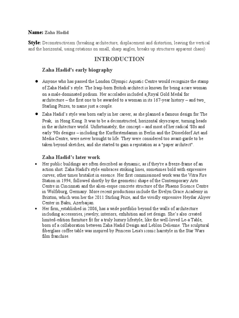 Zaha Hadid's early biography