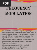 In frequency modulation (FM) the frequency of the radio signal is varied slightly by the audio signal.