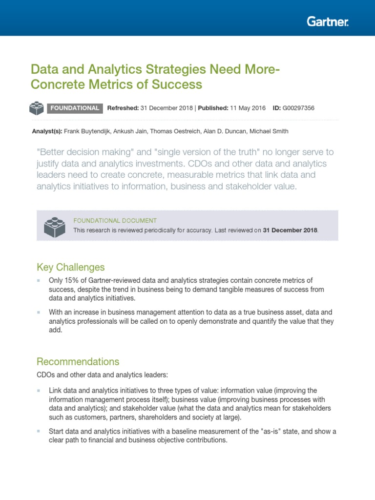■ Only 15% of Gartner-reviewed data and analytics strategies contain concrete metrics of