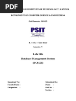 Name of Subject (DBMS Lab – MCA/BCA) Laboratory Manual