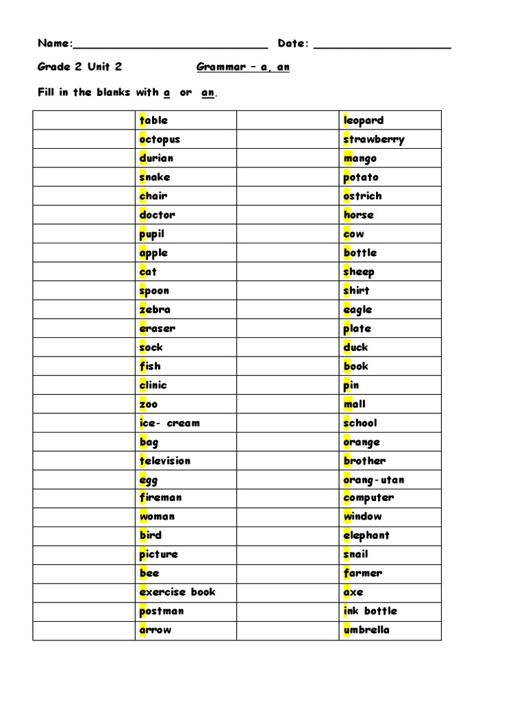 3. Mother cooks me ______ egg. I eat ______ egg for breakfast.