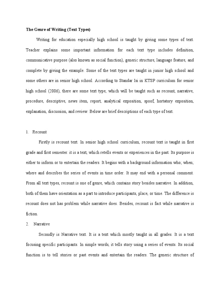 high school (2006), there are some text type, which will be taught such as recount, narrative,