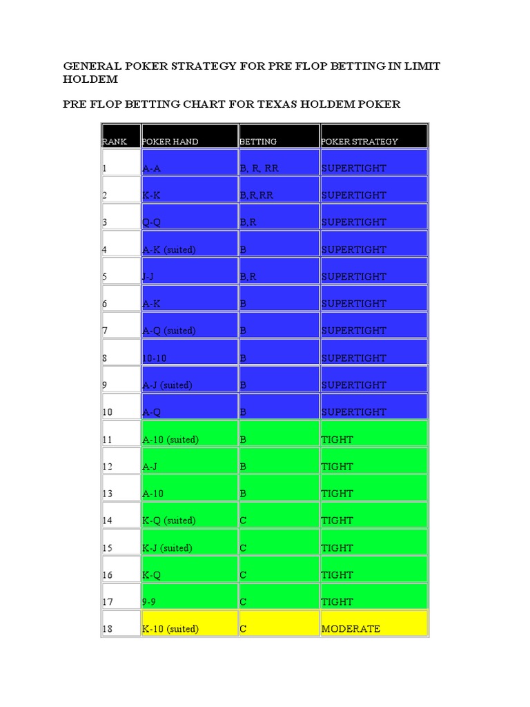 GENERAL POKER STRATEGY FOR PRE FLOP BETTING IN LIMIT