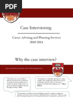A case interview is a type of job interview, used most frequently by strategy consulting firms, that allows an applicant to demonstrate his/her ability to solve a given business problem. During a case interview, an interviewer presents a situation or case and then asks the applicant to explore the underlying causes of the problem and suggest recommendations to remedy the problem. The cases given tend to be real business situations, often drawn from the interviewers actual project experience. Case interviews typically last from thirty to forty-five minutes and an applicant can expect to have several in the interview process at any given firm. Your success in a case interview will not depend on identifying the correct answer, but rather on how clearly you define the problem, how logically you structure your analysis, and how well you communicate your thoughts to the interviewer. Strategic consulting firms are looking for intelligent people who can approach business situations in an analytical fashion, think under pressure and maintain a professional presence with clients. A case interview provides excellent insight into how well you would perform in a strategy consulting situation. The purpose of this guide is to familiarize you with the process of a case interview, introduce you to some potential methodologies, and provide you with sample cases to practice. Learning about case interviews is also a helpful means to determine if strategic consulting is right for you, as these cases reflect the types of business situations and structured thinking strategy consultants encounter on a daily basis.