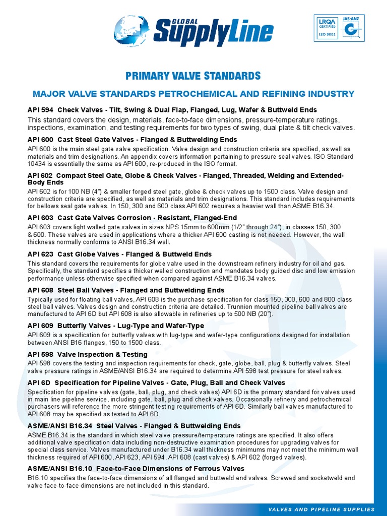 valve_standards_ANSI_BS_API R9 - AS GLOBAL SUPPLY LINE