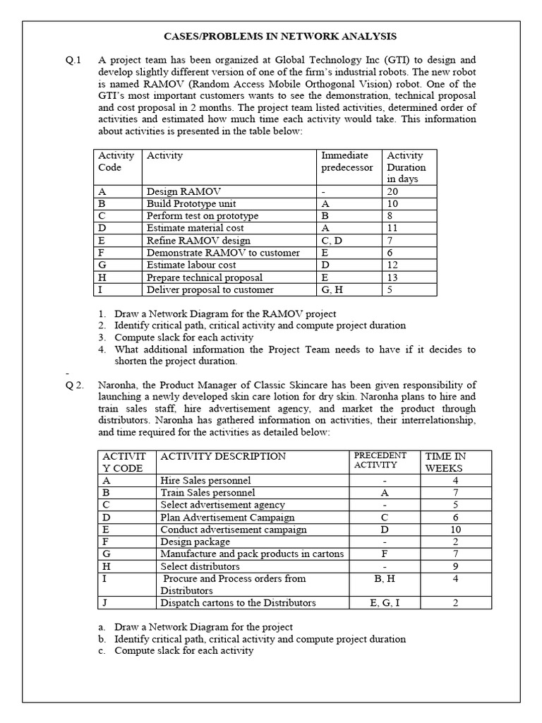 CASES/PROBLEMS ON RESOURCE LEVELING / RESOURCE SMOOTHENING