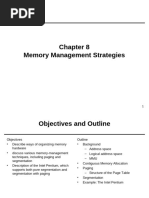 Main Memory - Discusses memory management techniques like paging and segmentation. - Paging divides memory into fixed-sized blocks called frames and logical memory into blocks called pages. A page table maps logical to physical addresses. - Hardware support like a translation lookaside buffer (TLB) caches recent address translations to improve performance by avoiding additional memory accesses.