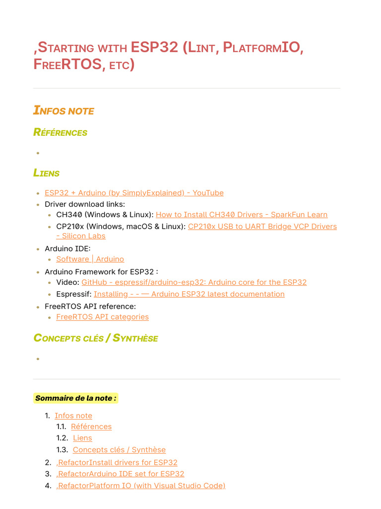 Note source : ,Starting with ESP32 (Lint, PlatformIO, FreeRTOS, etc)