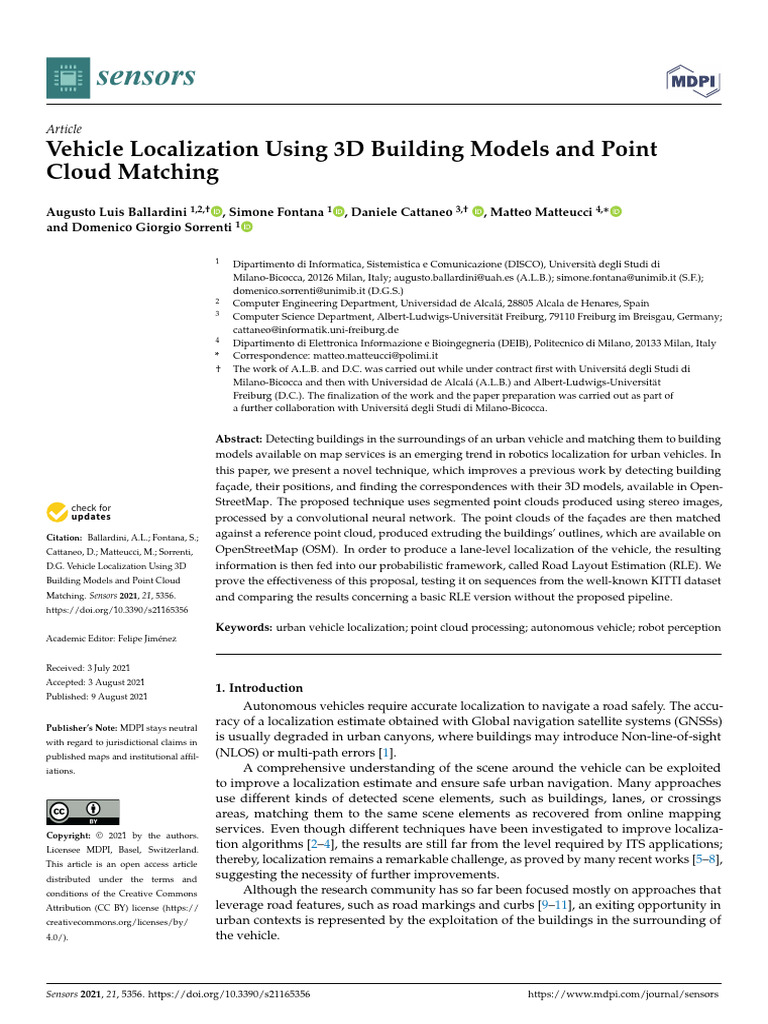 Augusto Luis Ballardini 1,2,† , Simone Fontana 1 , Daniele Cattaneo 3,† , Matteo Matteucci 4,∗
