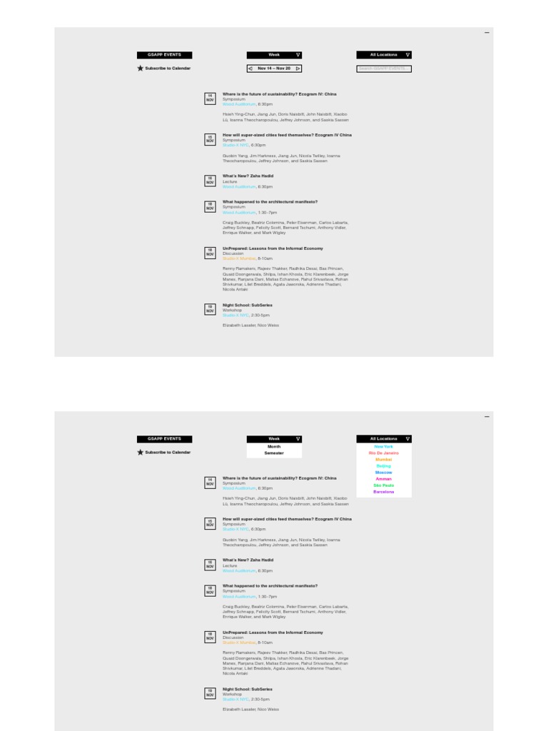 GSAPP EVENTS Subscribe to Calendar Week Month Semester All Locations New York Rio De Janeiro Mumbai Beijing Moscow Amman So Paulo Barcelona