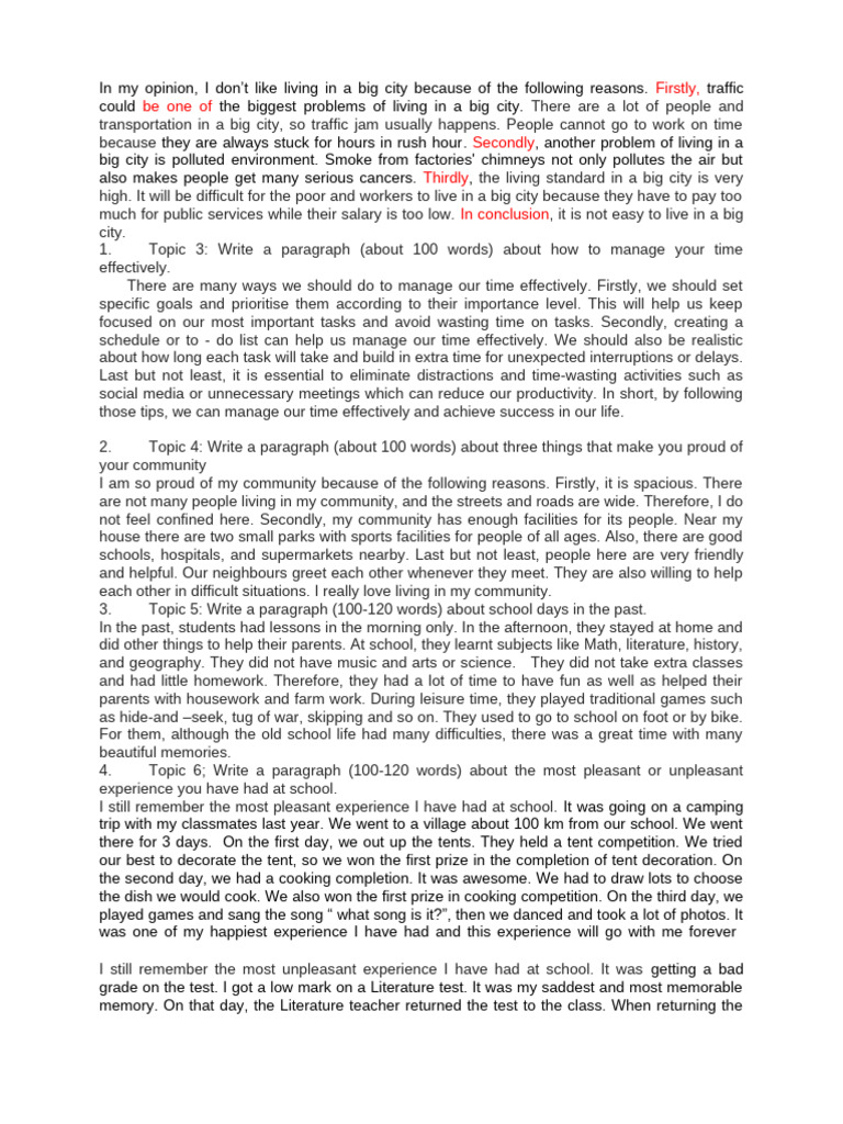 1. Topic 3: Write a paragraph (about 100 words) about how to manage your time