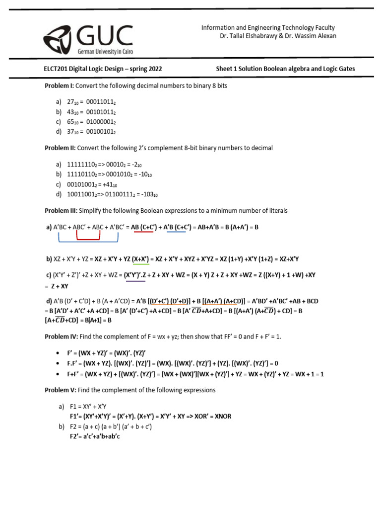 ELCT201 Digital Logic Design – spring 2022 Sheet 1 Solution Boolean algebra and Logic Gates