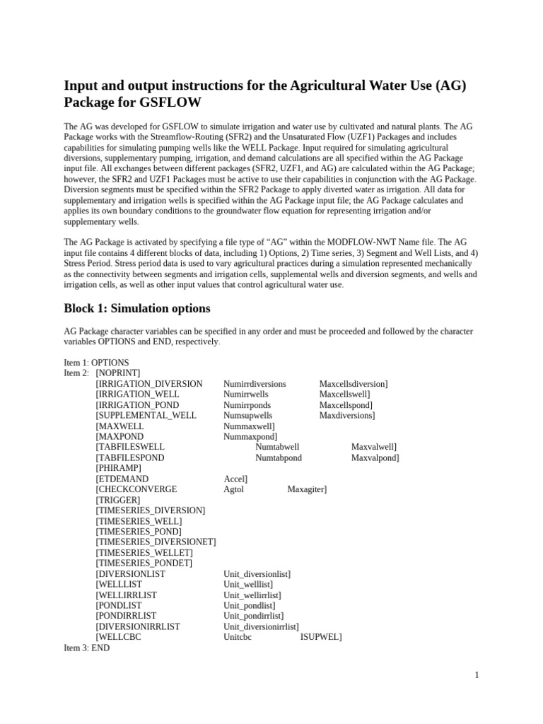 The AG Package is activated by specifying a file type of “AG” within the MODFLOW-NWT Name file. The AG