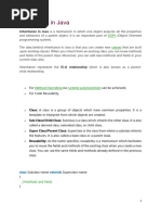 Inheritance – Inheritance hierarchies super and sub classes, super keyword, preventing
