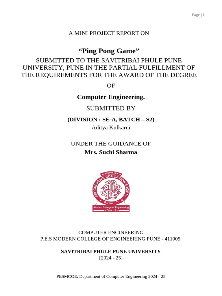It gives us pleasure in presenting the partial project report on “Ping Pong Game”.