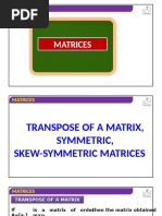 The transpose of matrix A, denoted as A , will have its order reversed. So, if A is 3 × 4, then A is 4 × 3.