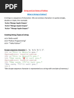 operations, Defining list and list slicing, Use of Tuple data type. String,