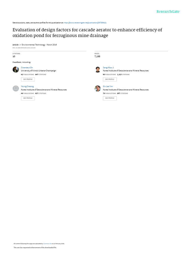 oxidation pond for ferruginous mine drainage, Environmental Technology, 37:19, 2483-2493,