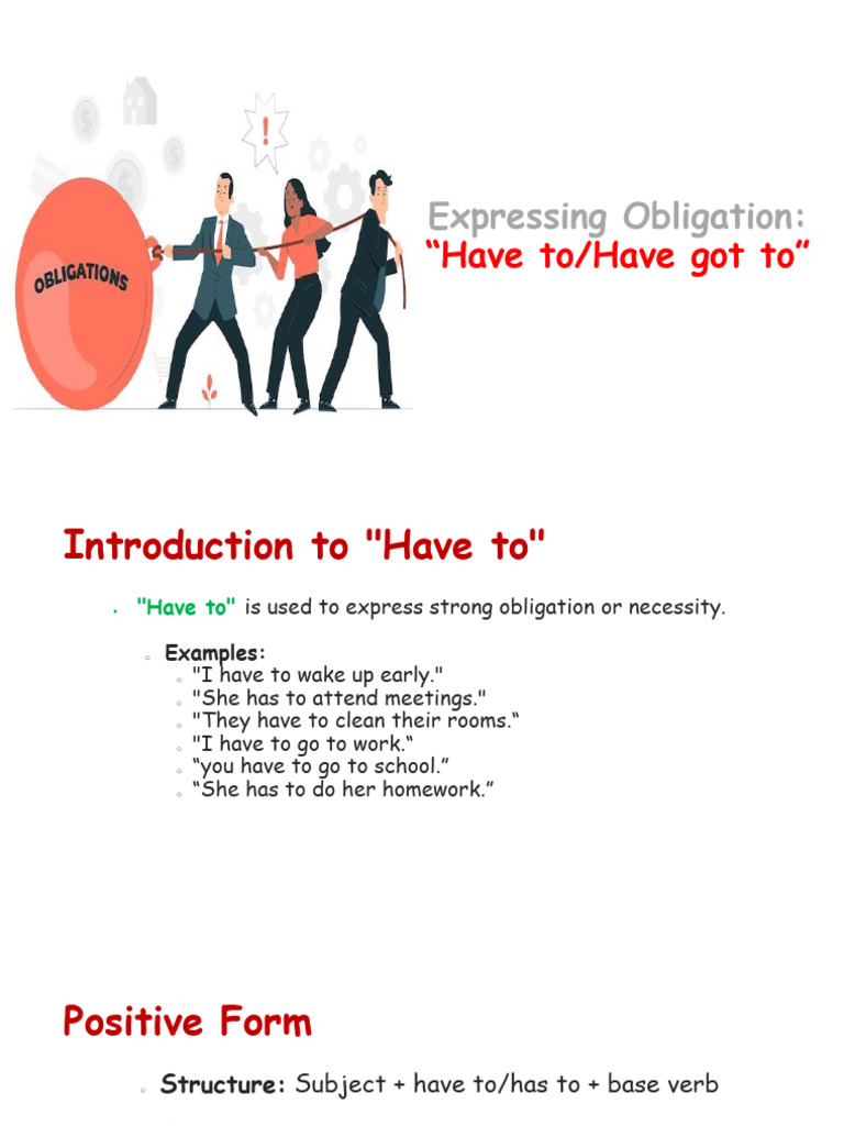 • “Have to” Used to show something is necessary or compulsory.