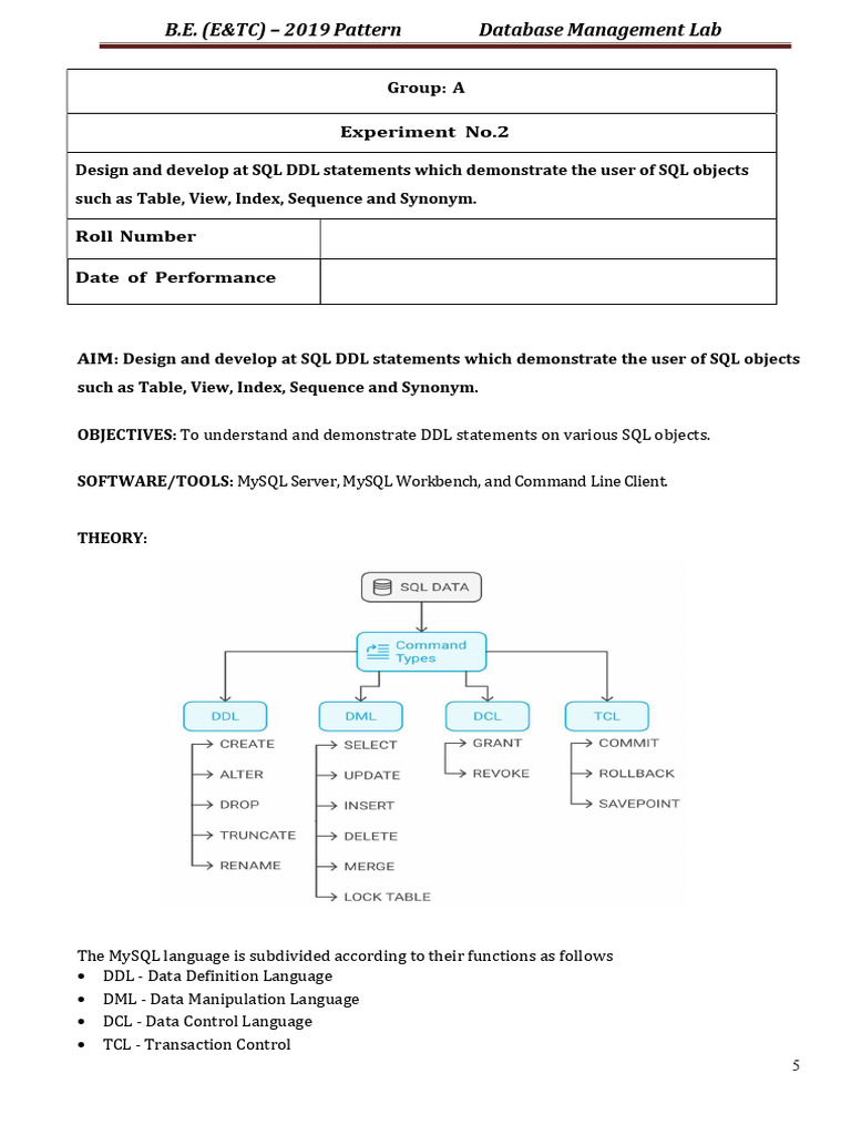 B.E. (E&TC) – 2019 Pattern Database Management Lab