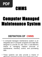 -Introduction -CMMS Needs Assessment -CMMS Capabilities -CMMS Benefits -CMMS implementation -CMMS Modules -Evaluating commercial CMMS -Design plan of locally developed CMMS