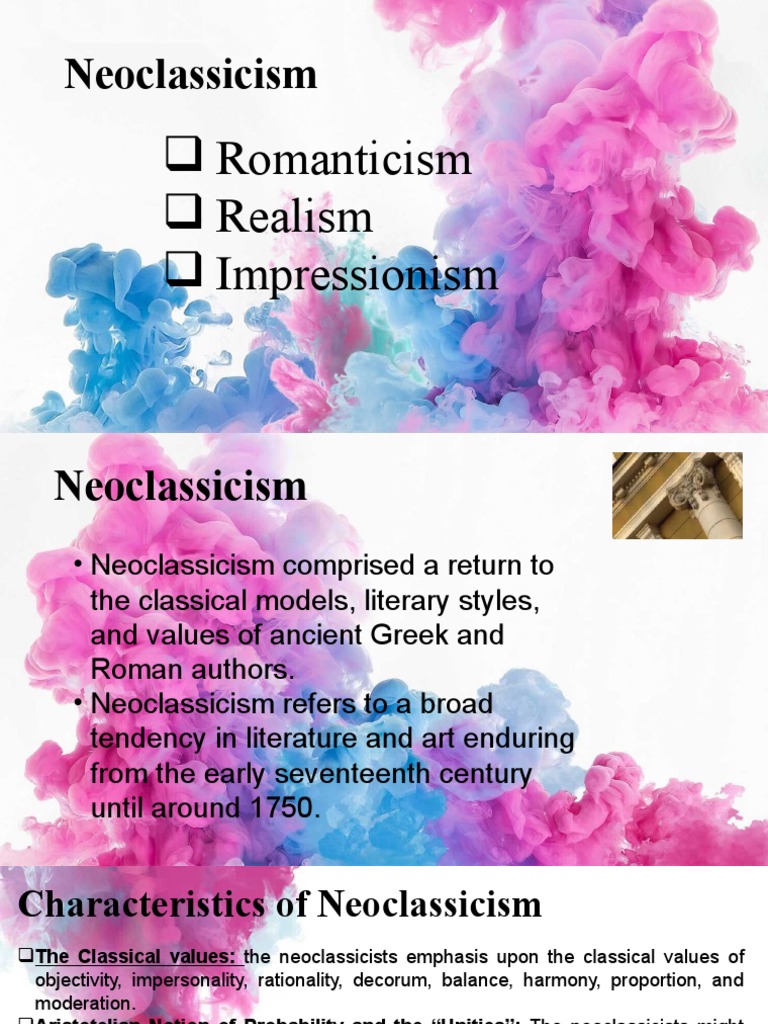 Nature of Literature: the neoclassical writers reaffirmed literary composition as a