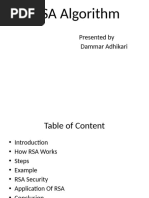 RSA security relies on the computational difficulty of factoring large • Encryption : message ^ E % N = Cipher