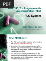 execution of a program stored in program memory, PLC continuously monitors status of the