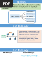 • Network topology is the physical and logical
